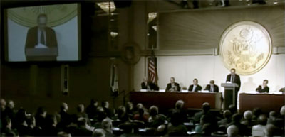 Dershowitz sagte: „Nach dem Zweiten Weltkrieg sagten wir: Nie wieder! Doch wissen Sie, was mit diesem ‚Nie wieder’ passierte? Daraus wurde ein ‚Wieder und wieder und wieder’. Diesmal müssen wir unser gemeinsames Versprechen erfüllen. Die Welt weiß jetzt Bescheid, sie hat keine Entschuldigung. Als der Holocaust geschah, sagte jeder: Wir wußten nichts davon. Als der amerikanische Völkermord geschah, wußten wir nichts davon, als die Genozide in Kambodscha geschahen, sagte man uns, das seien Propaganda-Gerüchte, wir wußten nichts davon. Rwanda Darfur – wir wußten nichts davon. Jetzt wissen wir. Wir sind unterrichtet. Wir sind gewarnt worden.