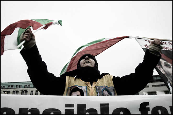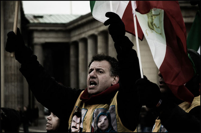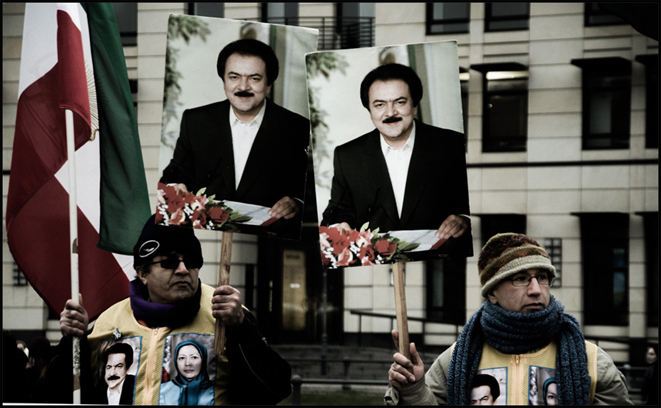 Berlin – 26. Feb. 2013 – Gegenüber der Residenz vom US-Außenminister John Kerry – Der iranische oppostionelle Nationale Widerstandsrat fordert US-Intervention und Schutz für iranische Dissidenten im Irak durch Rückkehr in Camp Ashraf sowie Aufnahme des Dialogs zwischen iranischer Opposition und der US-Regierung. Demonstranten fordern umfassende Sanktionen gegen das Teheraner Regime.