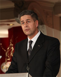 Man muß es schätzen, wenn ein Soldat einem Abgeordneten auf das Rednerpult folgt – das ist immer gut. (Gelächter) Frau Rajavi, verehrte Gäste, und vor allem ihr 3 400 Bewohner des Lagers Ashraf, die ihr uns vermutlich über einen Satelliten zuseht – möglicherweise ist das der letzte Kontakt, der euch zur Außenwelt bleiben wird, wenn es nach Al-Maliki und dem extremistischen iranische Regime geht -, ich fühle mich geehrt, heute abend hier zu sein. Was verbindet uns alle miteinander? Der Glaube an die Freiheit, die Demokratie; wenn man in diesem Glauben ein Versprechen ablegt, wird es gehalten. Wir haben versprochen, die mehr als 3 400 Bewohner des Lagers Ashraf zu schützen, als sie im Jahre 2003 ihre Waffen übergaben. Ich war dabei, ich bin Zeuge. Ich kann auch die intensiven Forschungen bezeugen, die über jedes im Lager Ashraf lebende Mitglied der MEK angestellt wurden. Ich wartete auf Schüsse, ich wartete auf den Beweis, der rechtfertigen würde, warum wir sie, wie ich es empfand, gefangen hielten. Dieser Beweis blieb aus. Als wir jeder im Lager Ashraf lebenden Person eine schriftliche Erklärung aushändigten, in der wir ihr Schutz und Sicherheit zusagten, wie Richter Mukasey es gezeigt hat, er hat die Personaldokumente in die Höhe gehoben, da war meine Einheit das ausführende Organ. Der Fleck, den Sie hier sehen – das ist die 89. Brigade der Militärpolizei, und ich war Kommandeur dieser Einheit, als wir mehr als 3 400 Personaldokumente ausgaben, die zeigen, dass die Vereinigten Staaten sie als geschützte Personen ansehen, und beim Himmel, wir werden euch schützen.
