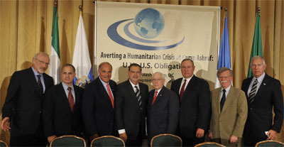 Das Gremium setzte sich aus dem Anwalt Michael Mukasey, Energieminister Spencer Abraham, Gouverneur Ed Rendell aus Pennsylvania, Kommandant des Marine Corps General James Conway, Stellvertretender Kommandeur der USA, Kommandeur Charles Wald, Botschafter John Bolton, und FBI Direktor Louis Freeh zusammen. Die anhaltende Listung der MEK werde benutzt, um einen Genozid in Camp Ashraf anzurichten, so das Gremium.