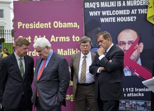 Vor einigen Tagen hatte bereits eine Initiative von 45 Kongreßabgeordneten beider Parteien und weiterer 36 Persönlichkeiten, zu denen hochrangige Offiziere gehörten, Präsident Obama in einem Brief aufgefordert, jegliche Hilfen und Waffenverkäufe in den Irak zu stoppen, bis die Geiseln frei gelassen und der Schutz der iranischen Dissidenten im Irak sicher gestellt ist.