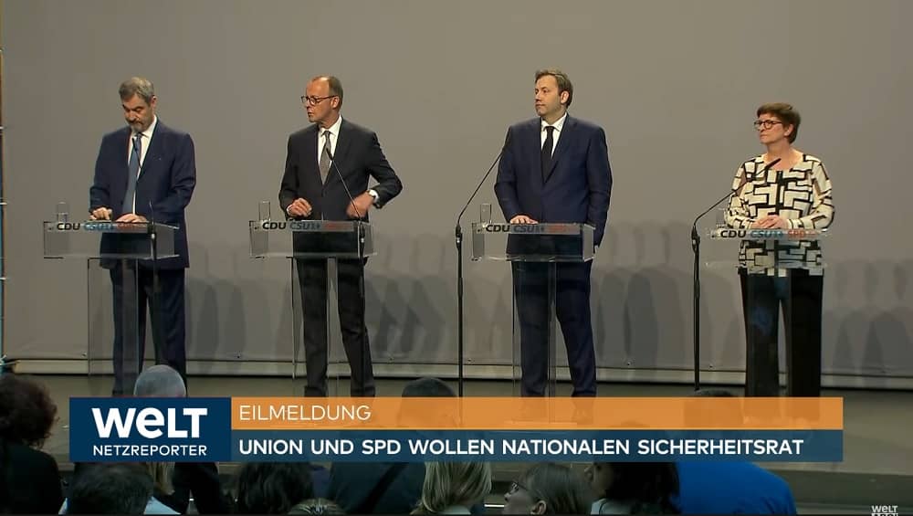 Auch die Christlich Demokratische Union (CDU) und die Christlich Soziale Union (CSU) bekräftigen ihr Engagement für die Eindämmung der iranischen Atomambitionen. Ihr Koalitionspapier unterstützt den bestehenden diplomatischen Rahmen der E3+3 und betont gleichzeitig Sanktionen und Verifikationsmechanismen: „Wir fordern den Iran auf, alle Zweifel am ausschließlich friedlichen Charakter seines Atomprogramms auszuräumen. Ein nuklear bewaffneter Iran stellt eine Gefahr für die gesamte Region und darüber hinaus dar und würde die weltweiten Bemühungen um Abrüstung und Nichtverbreitung schwer beeinträchtigen. Wir unterstützen alle Bemühungen innerhalb der E3+3 (Deutschland, Frankreich, Großbritannien, USA, Russland, China) um eine diplomatische Lösung des Iran-Konflikts und halten dabei am zweigleisigen Ansatz aus Kooperationsangeboten und gezielten Sanktionen fest. “(CDU/CSU-Koalitionsvertrag 2025–2029, S. 122)