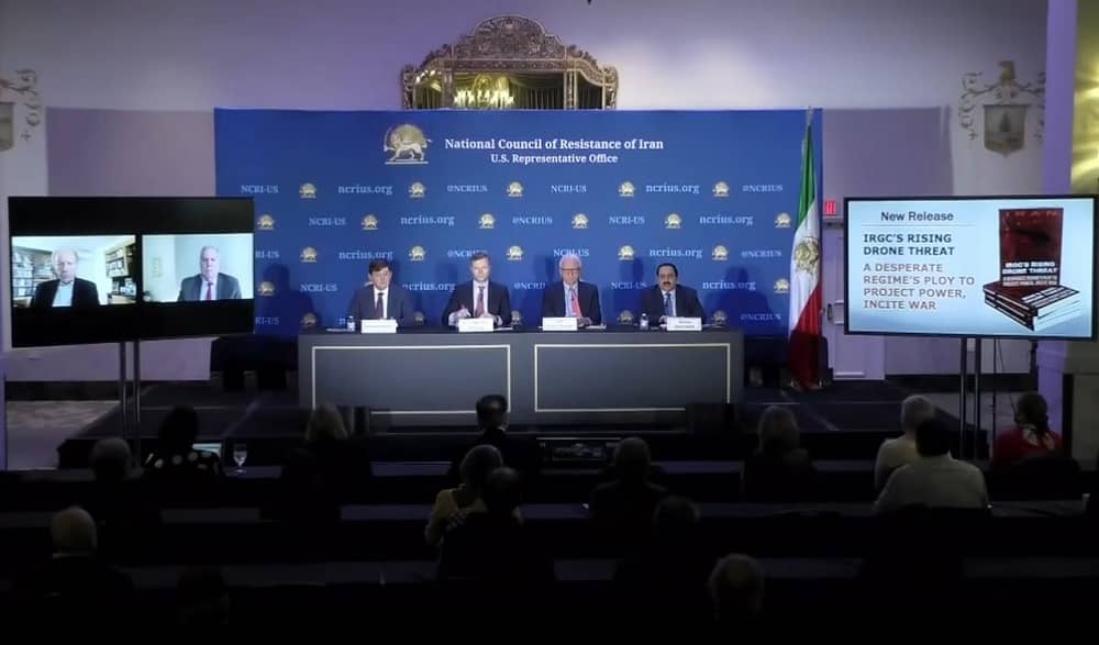 Diese Veranstaltung wurde moderiert von Alireza Jafarzadeh, dem stellvertretenden Direktor von NCRI-US. In seinen Ausführungen unterstrich Herr Jafarzadeh, dass der Iranische Widerstand in seinem Buch „Iran: Steigende Gefahr durch Drohnen. Das Manöver eines verzweifelten Regimes, Macht zu demonstrieren und Krieg anzuzetteln“ „zum ersten Mal“ enthüllt, dass „mehrere Frontfirmen der Revolutionsgarden (IRGC): das Drohnenprogramm des Regimes betreiben. Diese Unternehmen haben zivile Namen, stehen aber im Dienst des IRGC. Sie liefern Teile und Zusatzmaterial für das UAV [Drohnen] Programm. Sie machen das, was das IRGC nicht selbst machen kann. Sie helfen dem IRGC dabei, die Sanktionen zu umgehen. Das ist ein Schmugglerring“.
