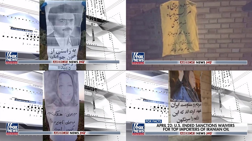 Fox News zeigte Transparente, die von den Widerstandseinheiten der MEK im ganzen Iran ausgehängt worden sind, mit Bildern von Frau Rajavi und dem Führer des Iranischen Widerstands Massoud Rajavi.