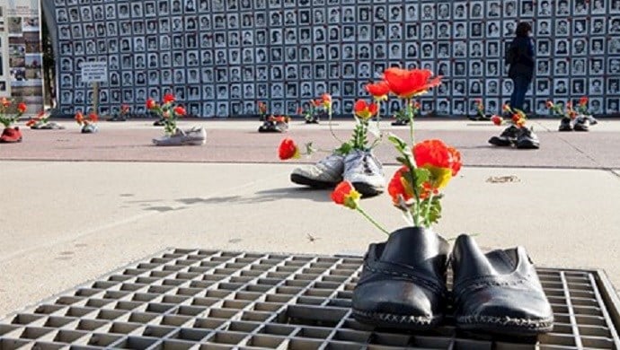Angehörige der Opfer und Überlebende des Massakers von 1988 veranstalten eine Ausstellung vor dem Hauptquartier der Vereinten Nationen in Genf (15. September 2017)
