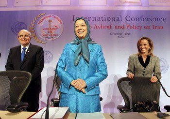 Frau Maryam Rajavi, die gewählte Präsidentin des iranischen Widerstands, sagte als besonderer Gast dieser Konferenz in ihrer Ansprache: „Die korrekte Lösung des iranischen Problems ist der Regierungswechsel, ein demokratischer Wandel, ins Werk gesetzt durch das iranische Volk und seinen Widerstand. Das ist in der iranischen Gleichung der ausschlaggebende Faktor. Jede Politik, die den Widerstand hemmt, verkennt den wichtigsten Faktor des Wandels im Iran und außerdem den schwachen Punkt des Regimes. Dieses Verkennen liegt der Politik eines falsch verstandenen Engagements zu Grunde. Nirgendwo zeigt sich dieser Fehler deutlicher als in Ashraf. Die Vereinigten Staaten waren sich der Tatsache bewußt, daß die Maliki-Regierung tat, was die Mullahs sie zu tun hießen, als sie ihre Schandtaten beging und die irakische Öffentlichkeit terrorisierte. Gleichwohl übergaben die USA die Verantwortung für Ashraf an den Irak. Diese Übertragung verletzte vier Gesetze des Völkerrechts: die 4. Genfer Konvention, die Konvention gegen Folter, das Prinzip des Non-Refoulement und das Prinzip des Rechts auf Schutz.“ Sie fragte: „Warum fürchten sich die Mullahs so sehr vor einer eingekesselten und unbewaffneten Gruppe 70 km von der iranischen Grenze entfernt? Weil sie wissen, dass in Ashraf der Schlüssel zum Wandel liegt. Sie wissen, dass Ashraf mit seiner Vorhut von 1 000 Frauen zur Gleichheit und Emanzipation der Frauen inspiriert.“