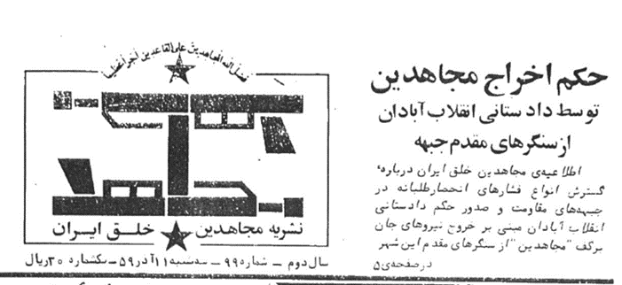 3. Am 16. November 1980 ordnete Khomeini durch seine Staatsanwaltschaft in der Stadt Abadan an, dass die Volksmojahedin innerhalb von 24 Stunden ihre Stellungen an der Front und in den südlichen Städten des Iran räumen sollten. Daraufhin begannen Verhaftungen, und für die Volksmojahedin, die in Abadan im rechtmäßigen Einsatz für ihre Heimat verhaftet wurden, wurden insgesamt 286 Jahre Haft verhängt. Beheshti, der zweite Mann des Regimes, sagte in einem Treffen mit Mehdi Abrishamchi, dem Vertreter der Volksmojahedin, offen: „Es wäre besser, wenn (die Irakis die Provinz) Khuzestan vom Iran wegnehmen, als dass ihr und die Regierung wegnehmt.“ (Seite 424 des Buches „Strategie des Aufstands und des Sturzes“, Januar 2010 und Zeitschrift „Mojahed“, 2. Dezember 1980).