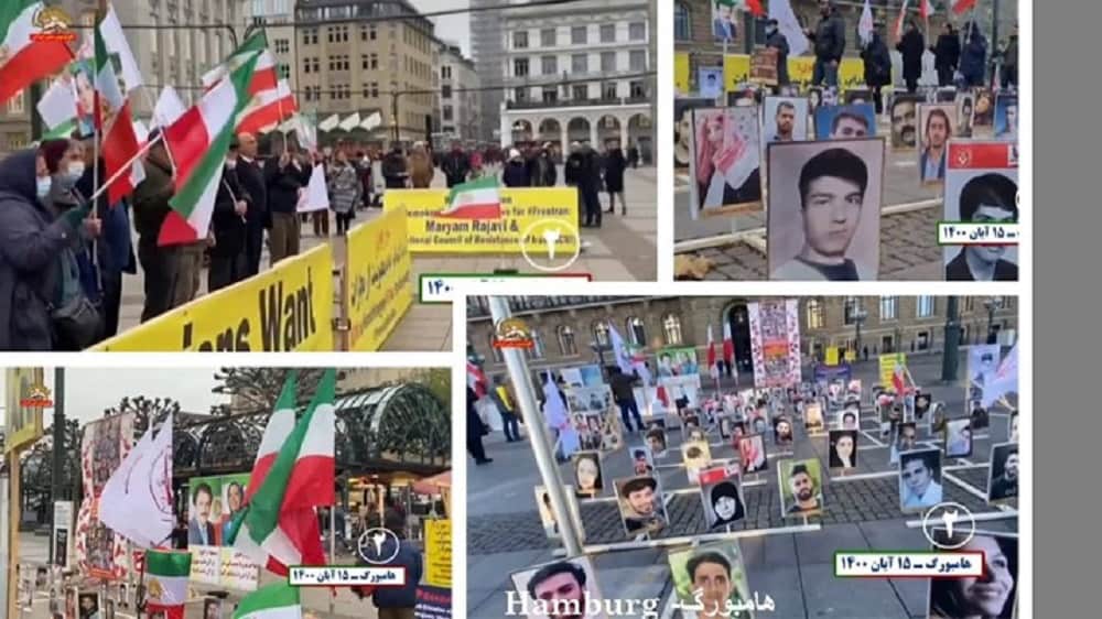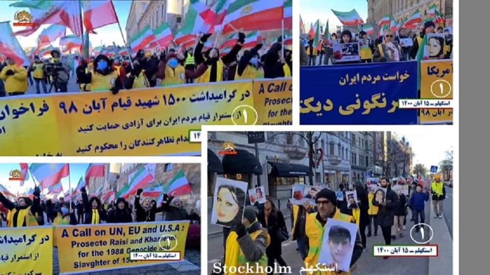 Unmittelbar vor dem zweiten Jahrestag des Aufstands vom November 2019 im Iran, veranstalteten am Freitag, Samstag und Sonntag, 5.-7. November 2021, Iraner, Unterstützer der Volksmojahedin (MEK/PMOI) in 18 Städten auf der ganzen Welt in Europa, Nordamerika und Australien Demonstrationen und Kundgebungen zu Ehren der 1.500 Märtyrer des Novemberaufstands. Die Demonstranten forderten die Vereinten Nationen, die europäischen und die amerikanischen Regierungen auf, die Täter dieses abscheulichen Verbrechens vor Gericht zu stellen. Im November 2019 gingen die empörten Demonstranten gegen die religiöse Diktatur in mehr als 200 Städten im Iran auf die Straße. Auf direkten Befehl Khameneis erschossen die Revolutionsgarden innerhalb weniger Tage mindestens 1.500 Demonstranten. Die Kundgebungen und Demonstrationen fanden in Paris, Hamburg, München, Frankfurt, Köln, Stuttgart, Stockholm, Göteborg, Malmö, Amsterdam, Kopenhagen, Oslo, Melbourne, Sydney, Montreal, Toronto, Ottawa und Bukarest statt. Die Anhänger des iranischen Widerstands stellten bei allen Kundgebungen und Versammlungen große Fotoausstellungen und Gedenkstätten der Märtyrer des Novemberaufstands auf. Zu den Slogans gehörten: „Das iranische Volk fordert den Sturz der klerikalen Diktatur und die Errichtung von Freiheit und Demokratie“,