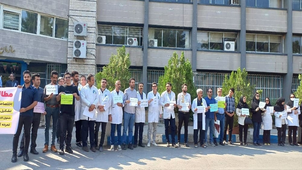 Radiologists hold protest rally, demanding better tariffs, an end to discriminatory policies, and proper rights and management of the radiology sector by government agencies. Similar protests are taking place in other provinces.#IranProtests pic.twitter.com/3YqZBQZKc0— People's Mojahedin Organization of Iran (PMOI/MEK) (@Mojahedineng) August 10, 2025