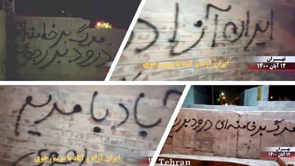 Einige der Slogans, die in den Plakaten oder Graffiti verwendet wurden, waren: „Möge die Erinnerung an die Märtyrer des Novemberaufstands ewig leben, die Flamme der Aufstände wird nicht erlöschen“, „Iran-Proteste werden fortgesetzt“, „Der Novemberaufstand geht weiter mit Widerstandseinheiten, „Tod dem Khamenei, es lebe Rajavi“, „Tod dem Khamenei, es lebe die Freiheit“, „Tod dem Khamenei und Raisi“, „Der Novemberaufstand geht mit der MEK weiter“, „Maryam Rajavi: Der Iran kann und muss befreit werden“ „Ein freier und wohlhabender Iran mit Maryam Rajavi“, „Maryam Rajavi: „Euer Aufstand steht für den glorreichen Widerstand unseres Volkes, das sich nicht demütigen lässt”. „Massoud Rajavi: Das Schicksal wird in der Kampfszene vom Volk und seinen rebellischen Kindern bestimmt“, „Massoud Rajavi: Der Sturz des unmenschlichen Feindes ist unvermeidlich“, „Massoud Rajavi: Der 15. November ist ein nationaler, dauerhafter und ewiger Tag.“