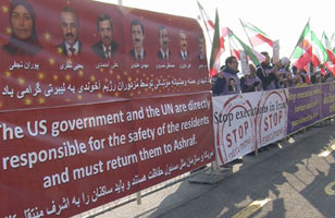 Viele der Demonstranten haben Familienangehörige und Freunde in Camp Liberty und Ashraf. Sie fordern von der UNHCR, dass sie alle Bewohner nach dem Raketenanschlag vom 9. Februar auf Camp Liberty nach Camp Ashraf zurück bringt. Bei dem Anschlag starben acht Menschen.