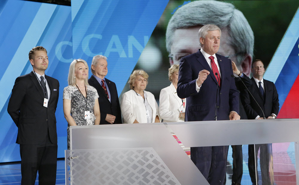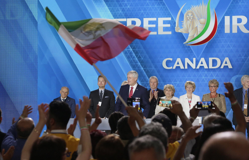 Harper legte dar, dass Kanada unter seiner Regierung zu einer unnachgiebigen Politik gegen das iranische Regime gegriffen habe, darunter die Förderung der jährlichen Resolutionen in den Vereinten Nationen gegen die Verletzung der Menschenrechte im Iran, die Einführung von Sanktionen gegen die Revolutionsgarden und andere Organisationseinheiten des Regimes, die Listung des Regimes als staatlicher Unterstützer von Terror zu setzen, die Erlaubnis für die Opfer von Gräueltaten des Regimes, förmliche Anklage gegen die die Mullahs zu erheben, und der Abbruch der diplomatischen Beziehungen zum Iran. Das alles geschah zur Unterstützung einer Außenpolitik, die Freiheit, Demokratie und Menschenrechte herbeiführen soll.