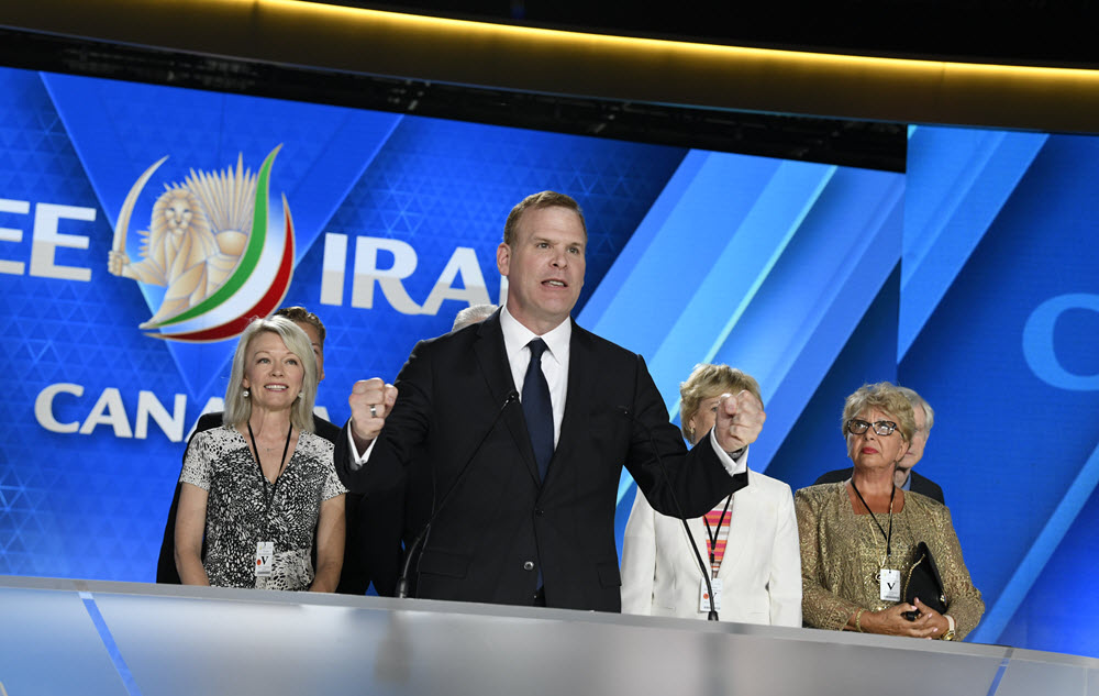 Er meinte dazu: „Wir dürfen die Bevölkerung des Iran nicht übergehen und wird dürfen seinen Wunsch nach einem Wandel nicht beiseitelassen. Im Laufe der letzten sechs Monate hat das Volk im Iran großen Mut bewiesen beim Protest auf den Straßen in mehr als 140 Städten. Sie kämpfen verzweifelt für einen Regimewechsel. Liebe Freunde, es wird Zeit, dem Volk im Iran zur Seite zu stehen und ihm seine volle Unterstützung zu geben“.