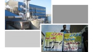 Unterschlagung in der Höhe von 1,4 Milliarden $ durch Mitglieder des iranischen Regimes, die im Besitz der Haft Tappeh Zuckerrohrfabrik in Khusistan sind, während keine Gehälter an die Arbeiter ausgezahlt werden