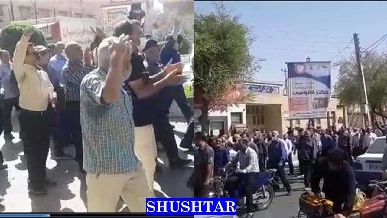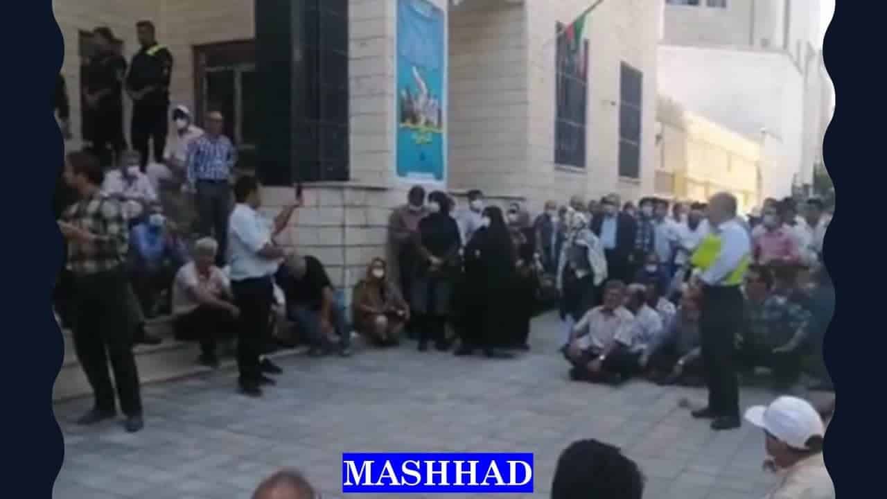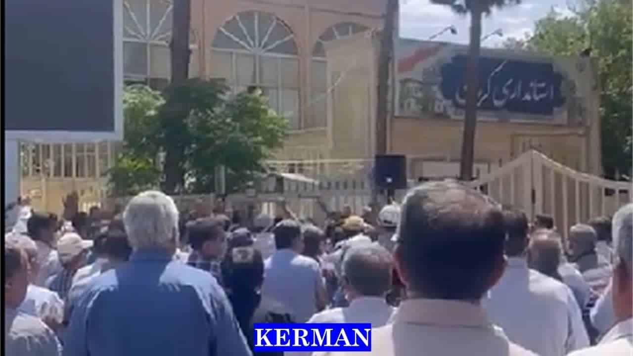 Wütende Demonstranten skandierten Parolen wie: „Tod Raisi“, „Es gibt keinen Gott außer Allah, Raisi ist der Feind Allahs“, „Tod der Sechstklässler-Regierung“, „Die Sechstklässler-Regierung wird bald verschwinden“, „Die Mullahs müssen verschwinden“, „Weder Kompromiss noch Kapitulation; Kampf bis zum Sieg“, „Keine Demütigung mehr; entweder Tod oder Leben“, „Wenn es weniger Unterschlagungen gibt, werden unsere Probleme gelöst“, „Bewahre uns vor so viel Unterdrückung“, „Sowohl das Parlament als auch die Regierung belügen die Nation“, „Inkompetenter Minister, schäme dich! “, „Sicherung von Rentnern ist eine Lüge“, „Die Regierung verrät, das Parlament unterstützt“, „Bis wir unsere Rechte bekommen, wird es jeden Tag gleich sein“, „Wir werden nicht unter Unterdrückung leben, wir werden unser Leben für die Freiheit opfern, beendet diese Sklaverei“, „wir werden kämpfen, wir werden kämpfen, wir werden keine Kompromisse eingehen“.