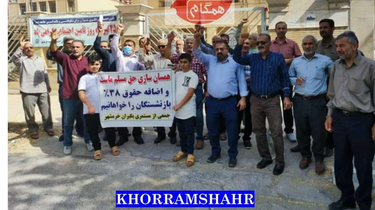 Rentner versammelten sich und demonstrierten vor der Sozialversicherungsorganisation in Teheran und vor Sozialversicherungsämtern in Ahvaz, Shushtar, Karaj, Isfahan, Kermanshah, Babol, Sari, Arak, Ardabil, Khoramshahr, Shush, Bandar Abbas, Zanjan, Ilam, Andimshek, Täbris, Mashhad, Rasht, Khorramabad, Qazvin, Sirjan, Dezful, Hamadan, Birjand, Bojnord, Ramhormoz und Kerman.