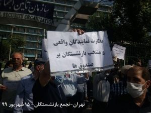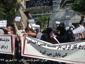 Am 5.September trafen sich Hunderte Rentner und Pensionäre vor dem Büro der Organisation für Soziale Sicherheit, um gegen Armut, Inflation und hohe Preise zu protestieren. Die Rentner kamen aus Teheran, Mashhad, Rasht, Ahvaz, Bushehr, Karaj, Urmia, Tabriz, Arak, Bojnurd, Khorramabad, Kerman, Lahijan, Shush, Neyshabur und anderen Städten im Iran, um dort für ihre Rechte zu demonstrieren. Die unterdrückenden staatlichen Sicherheitskräfte (SSF) sowie Spezialeinheiten erschienen in voller Kampfmontur auf der Demonstration und versuchten, die Öffentlichkeit davon abzuhalten, sich der Demonstration anzuschließen.