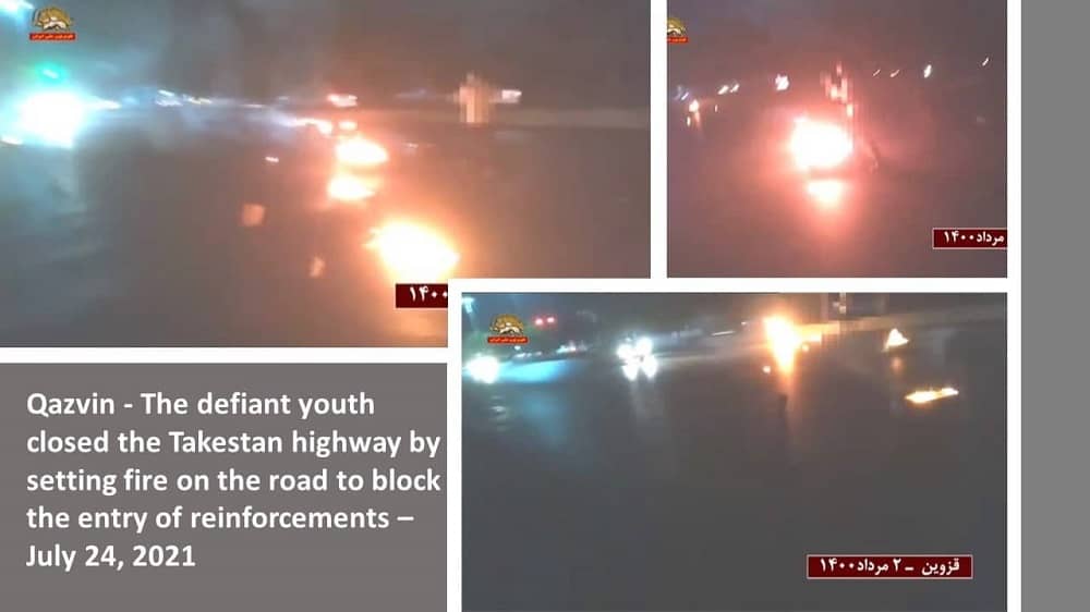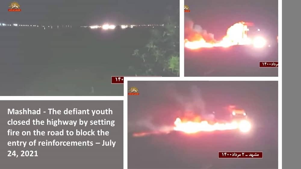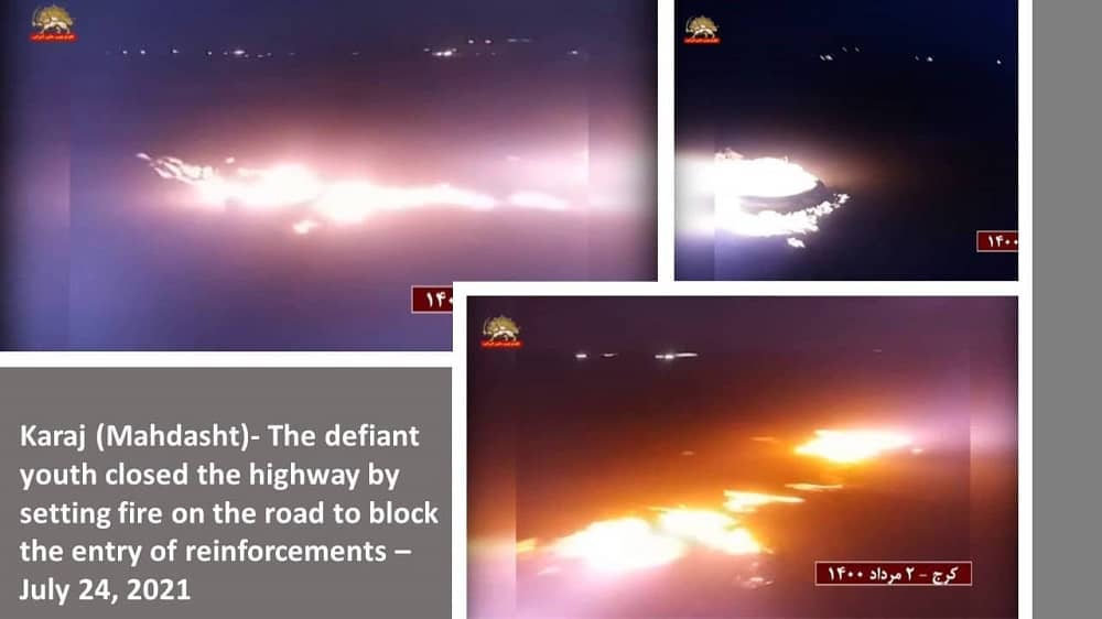 in der 10. Nacht des Aufstandes, haben nach einem Aufruf von Massoud Rajavi, dem Führer des Iranischen Widerstands, aufständische Jugendliche an den Hauptschnellstraßen in Mahshahr, Aligudarz, Sarbaz, Najafabad, Qazvin, Karadsch (Mohammadshahr Straße nach Kianmehr) und Maschhad Feuer entzündet, um zur Unterstützung der Protestierenden in Khusistan die Transit Schnellstraßen zu blockieren und Verstärkung für die repressiven Kräfte zu verhindern.