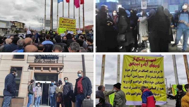 Ebenfalls am Dienstag trafen sich Bürger von Chaf und Chamkhaleh (Provinz Gilan, Nordiran), um gegen die Besetzung ihres geerbten Landes durch die Stiftung für Hausbau und Stadtentwicklung und die Revolutionsgarden (IRGC) zu protestieren.