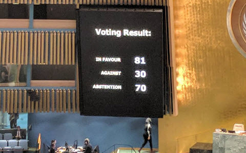 Im Jahre 2016 verabschiedete die UN-Vollversammlung eine ähnliche Resolution – mit fast gleichem Stimmergebnis.