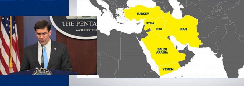 „Heute gab das Verteidigungsministerium die Entsendung zusätzlicher Truppen der USA in das Königreich Saudi-Arabien bekannt. Die Minister Pompeo und Esper haben mit den Saudis viele Gespräche geführt. … Das Ergebnis dieser bilateralen Gespräche ist die heutige Ankündigung, daß zusätzliche 3 000 Soldaten nach Saudi-Arabien fliegen werden.“ Brian Hook, der Sprecher des US-State Departmens, sagte während einer Presskonferenz, die zusätzliche Entsendung diene dem Schutz der Interessen der Vereinigten Staaten vor Angriffen durch den Iran.