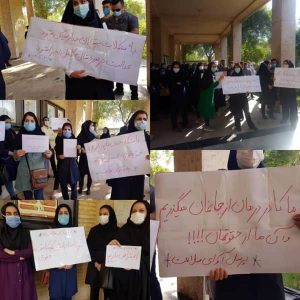 Beschäftigte im Gesundheitsbereich und Krankenschwestern in Ahwaz protestieren gegen die verzögerte Auszahlung ihrer Gehälter.