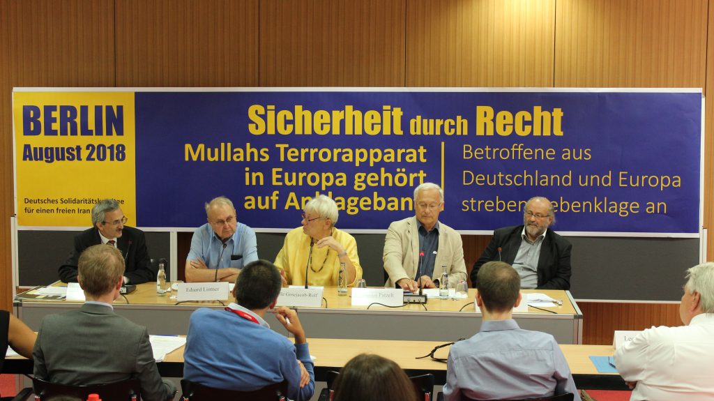 Am 22. August 2018 hielt das Deutsche Solidaritätskomitee für einen freien Iran eine Pressekonferenz im Haus der Bundespressekonferenz in Berlin unter dem Motto: „Mullahs Terrorapparat in Europa gehört auf Anklagebank – Betroffene aus Deutschland und Europa streben Nebenklage an“. Auf der Konferenz sprachen u.a. Martin Patzelt (MdB – Berichterstatter für den Iran im Menschenrechtsausschuss des Bundestages), Eduard Lintner (ehem. Staatssekretär des Bundesinnenministeriums), Rechtsanwalt Bernd Häusler (langjähriger Menschenrechtsbeauftragter der Rechtsanwaltskammer Berlin), Hille Gosejacob-Rolf (DSFI-Geschäftsführerin) und Javad Dabiran von der Deutschlandvertretung des Nationalen Widerstandsrates Iran (NWRI).
