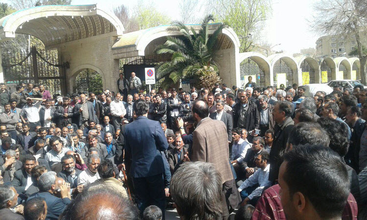 11. Die ausgeplünderten Mitarbeiter der Regierungs-Institution „Valiasr“ in Rabat Karim versammelten sich vor deren Gebäude und skandierten: „Der Räuber macht Beute, die Regierung hilft ihm dabei.“