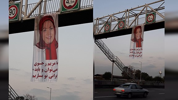 Vom 28. bis zum 30. Oktober hängten – den repressiven Maßnahmen des religiösen Regimes zum Trotz – Widerstandseinheiten in verschiedenen Teilen Teherans (darunter Azadegan, Al-Qadir, Niayesh und Sabalan) und in vielen anderen iranischen Städten, darunter Mashhad (im Nordosten), Kashan (im Zentrum), Tabriz (im Nordwesten), Khorram-Abad (im Westen) und Shahr-e Rayan (im südlichen Teheran) an Überführungen über die Schnellstraßen und an Wänden große Bilder von Frau Maryam Rajavi, der gewählten Präsidentin des Nationalen Widerstandsrates Iran (NWRI), und Herrn Massoud Rajavi, dem Leiter des iranischen Widerstands, auf.