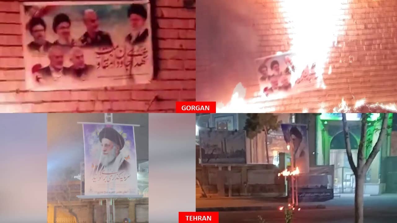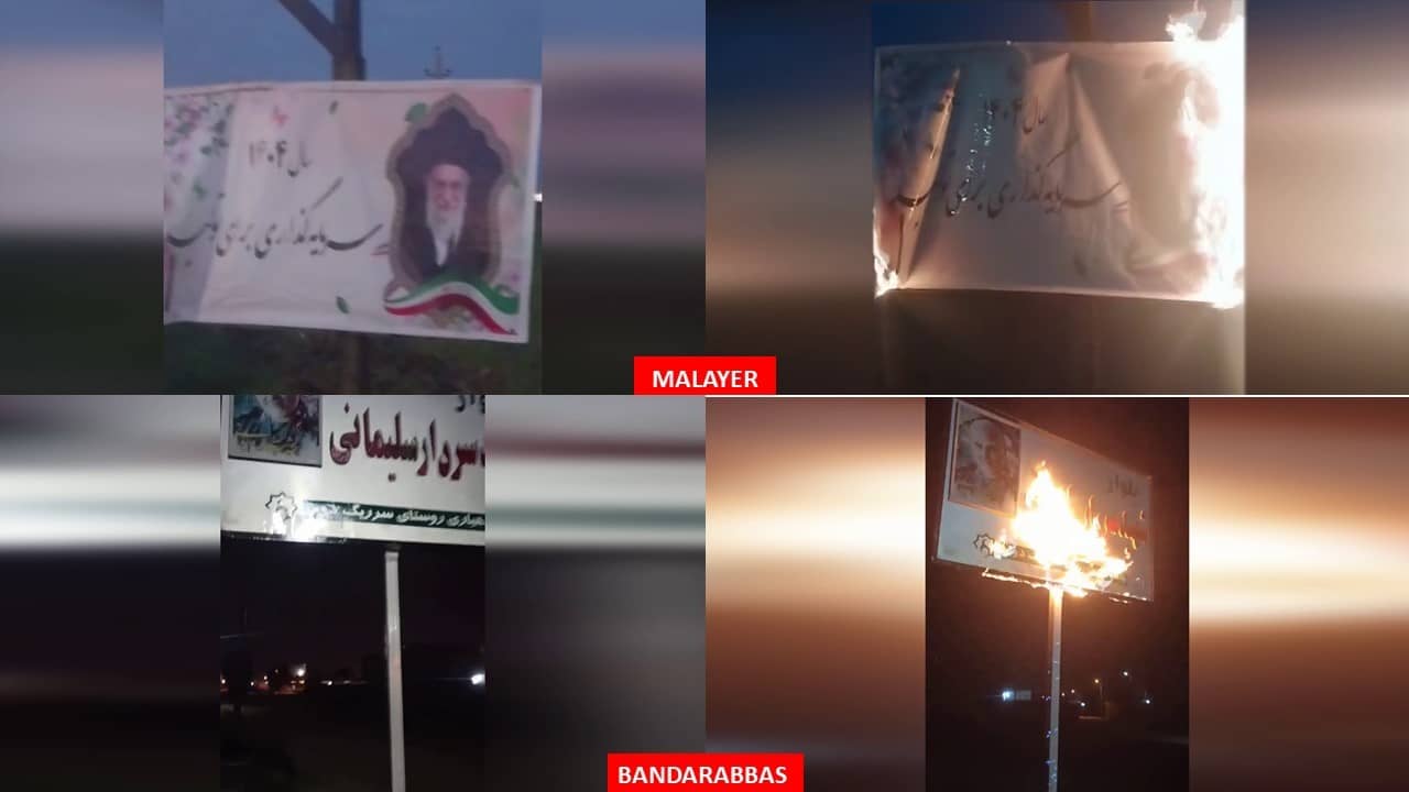 Zusätzlich wurden in Teheran, Gorgan, Bandar Abbas, Kerman, Kermanshah, Neyshabur und Malayer Regierungsplakate, Transparente und Plakate mit berüchtigten Bildern von Chomeini, Khamenei und Soleimani in Brand gesteckt.