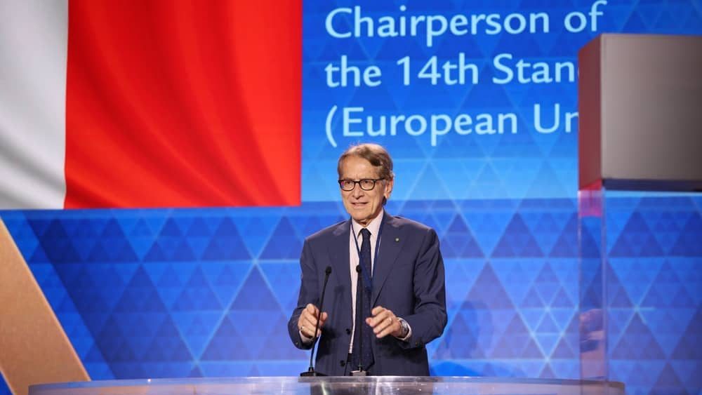 Senator Giulio Terzi spricht auf der dritten Sitzung des Free Iran World Summit 2025 in Rom am 31. Juli 2025