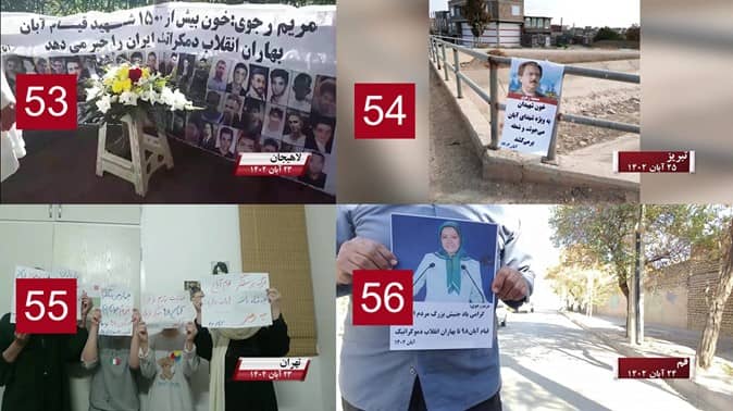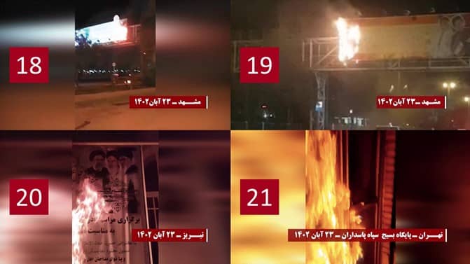 Im Gedenken an den vierten Jahrestag des Aufstands vom November 2019, bei dem 1500 Protestierer unter den Händen der Unterdrückungskräfte ihr Leben verloren haben, haben Widerstandseinheiten und aufrührerische Jugendliche in Teheran und verschiedenen anderen Städten im ganzen Iran vom 14. bis 16. November Operationen durchgeführt, sie nahmen 150 Zentren der Unterdrückung, die mit den Revolutionsgarden und Basidsch in Verbindung stehen, Einrichtungen der Justiz des Regimes und von Organisationen, die an Ausplünderung und Korruption beteiligt und mit den Mullahs verbunden sind, und außerdem Symbole des Regimes ins Visier.