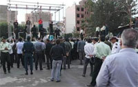 Erhängungen sind eine übliche Hinrichtungsmethode im Iran. Die Hinrichtungen finden in der Regel bei Sonnenaufgang statt und oft am Ort des Verbrechens, dessen der Täter beschuldigt wird oder im Stadtzentrum. Die Familien der Verurteilten versammeln sich dann, während die Henker alles vorbereiten, um den Verurteilten an einen Kran auf zu hängen.