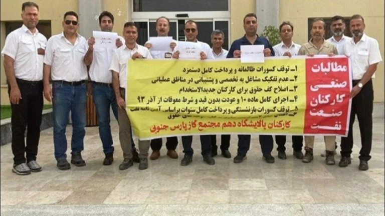 In einer hoch organisierten und strategischen Aktion starteten Beamte der staatlichen Öl- und Gasindustrie am 4. August gleichzeitige Proteste im gesamten wichtigen Energiezentrum South Pars. Arbeiter in Asaluyeh (Standort 1), der 10., 11. und 12. Raffinerie sowie auf den 40 Offshore-Plattformen der Pars Oil and Gas Company (POGC) traten aus Protest gegen stagnierende Löhne und die Nichteinhaltung vertraglicher Verpflichtungen durch das Regime in den Streik.