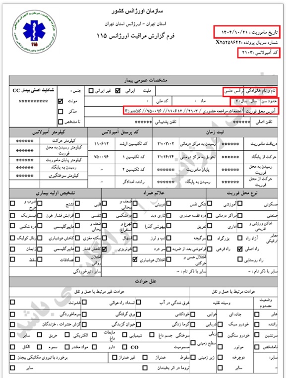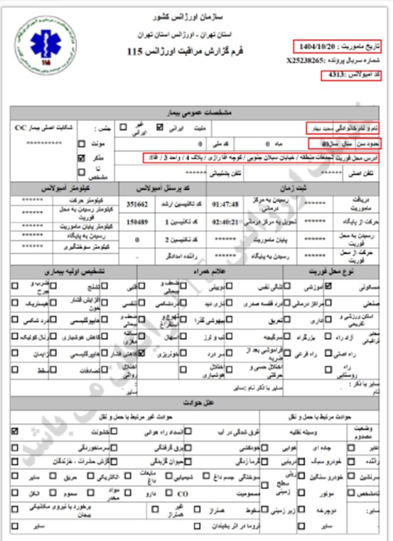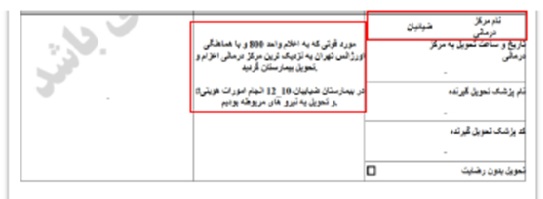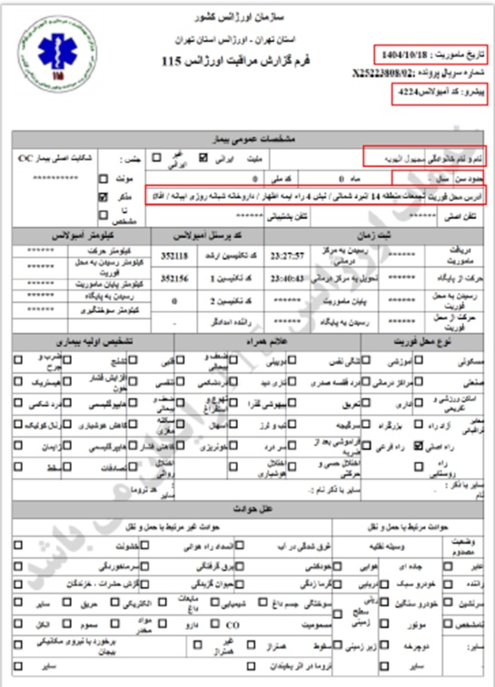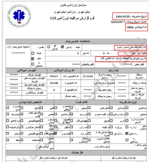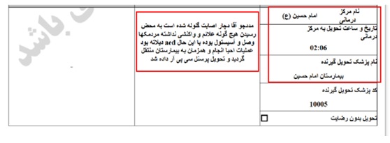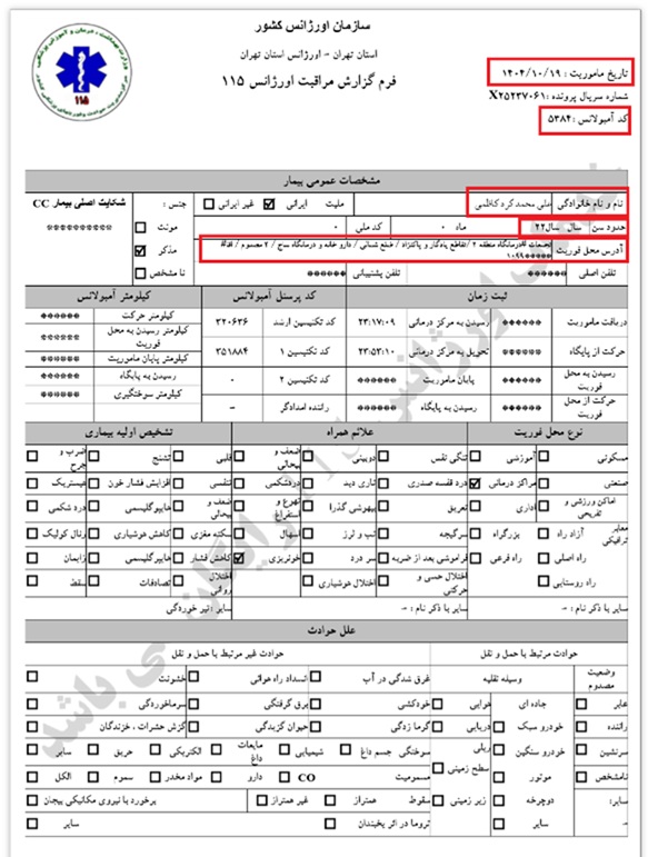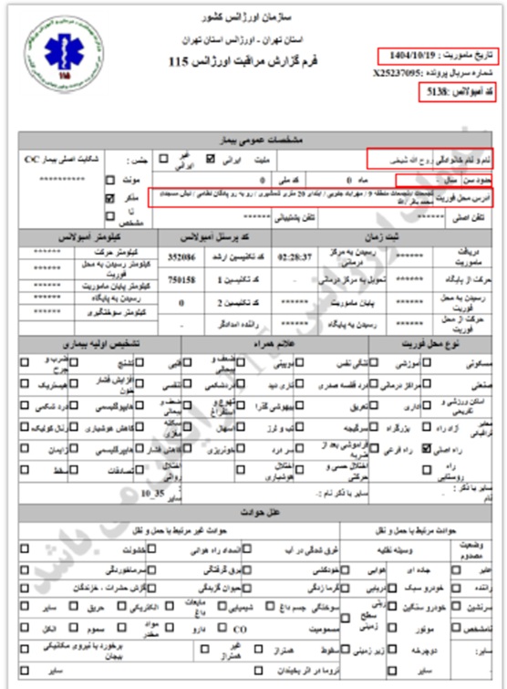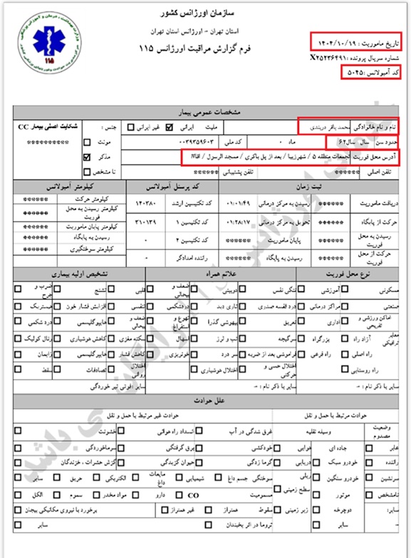 Ein Todesfall, der auf Anordnung der Leitstelle Einheit 800 und in Koordination mit dem Teheraner Rettungsdienst in das nächstgelegene Krankenhaus überführt und dort übergeben wurde.