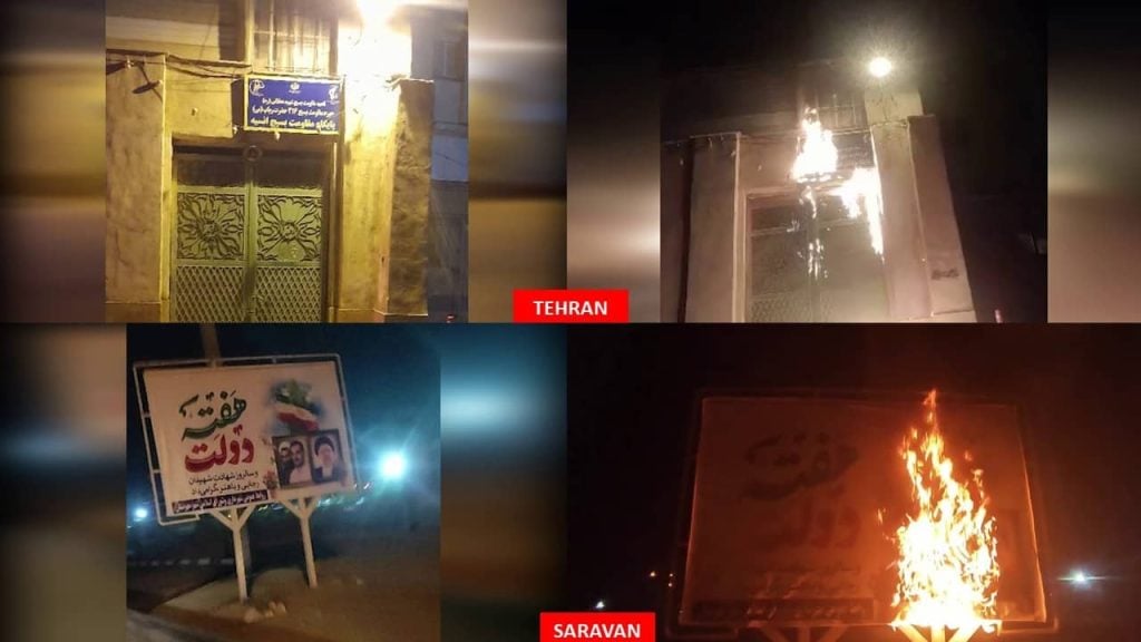Darüber hinaus wurden in den Städten Semirom, Aligudarz, Saravan, Teheran und Ramhormoz die Schilder des Geheimdiensthauptquartiers der Basij-Miliz der Revolutionsgarde sowie Symbole, Zeichen und Bilder von Khamenei, Ebrahim Raisi und Qassem Soleimani in Brand gesteckt.