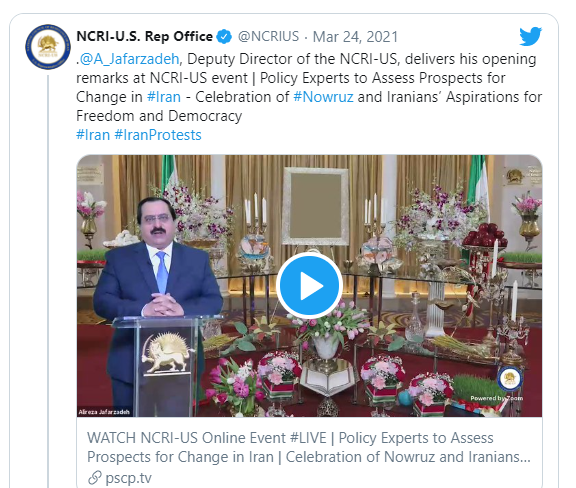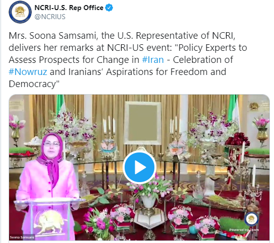 Am vergangenen Mittwoch veranstaltete das Vertretungsbüro des Nationalen Widerstandsrates des Iran (NWRI) in den USA eine Konferenz online – die sozial distanzierte Alternative der jährlichen Versammlung amerikanischer Freunde und engagierter iranischer Exulanten. Die Online-Konferenz galt der Feier des iranischen Neujahrsfestes Nowruz, das am Sonnabend gefeiert wurde und nach dem iranischen Kalender den Beginn des Jahres 1400 bezeichnet.