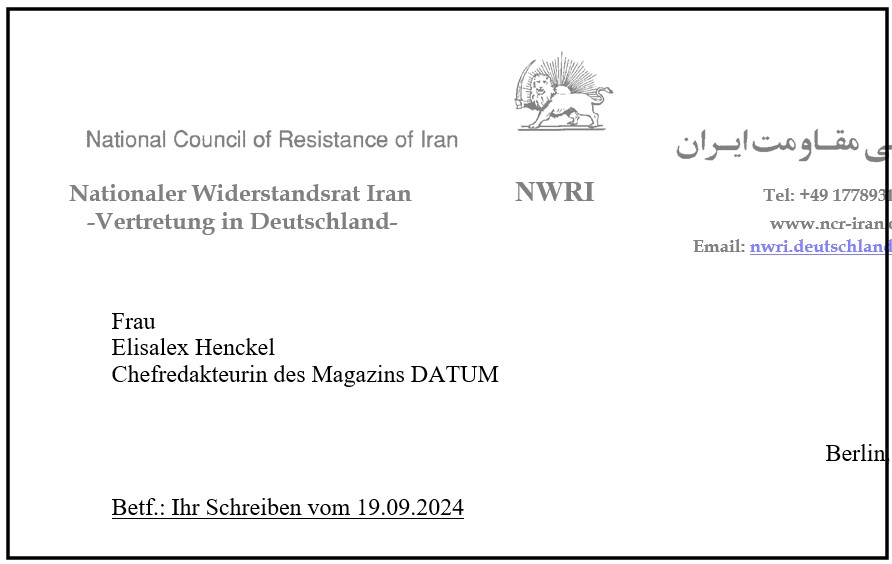 Brief der NWRI-Deutschlandvertretung an die Zeitschrift DATUM: Geben Sie Verleumdungen keinen Raum!
