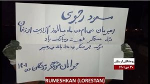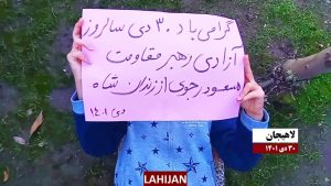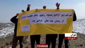Anlässlich des Jahrestages der Freilassung der letzten Gruppe politischer Gefangener aus den Gefängnissen des Schahs demonstrierten Mitglieder einer Widerstandseinheit in Teheran am Mittwochabend, 18. Januar, im Bezirk Jannat-Abad. Sie skandierten Slogans wie “Die Revolutionsgarde von heute ist der SAVAK (Geheimpolizei des Schahs) von gestern; der Iran hat sowohl den Scheich als auch den Schah hinter sich gelassen”, “Tod für Khamenei, verdammt sei Khomeini; Es lebe Rajavi”, “Die Welt soll wissen, dass Massoud (Rajavi) unser Anführer ist”, “Die Befreiungsarmee ist siegreich”.