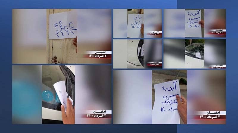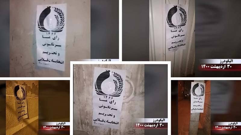 Najafabad, Shahr-e Qods, Gom und Ilam – Aktivitäten der Widerstandseinheiten und Unterstützer der MEK, die zum Boykott der Scheinwahlen für die Präsidentschaft des Regimes aufrufen – „Meine Stimme gilt dem Regimewechsel, ja zu einer demokratische gewählten Republik“ – 20. Und 21. Mai 2021