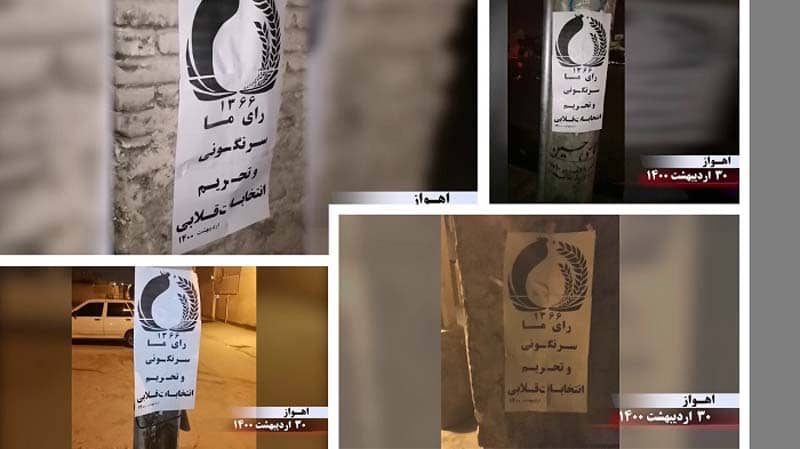 Ahwaz – Aktivitäten der Widerstandseinheiten und Unterstützer der MEK, die zum Boykott der Scheinwahlen für die Präsidentschaft des Regimes aufrufen. „Unsere Stimme: Regimewechsel und Boykott der Wahlfarce“ – 20. Mai 2021